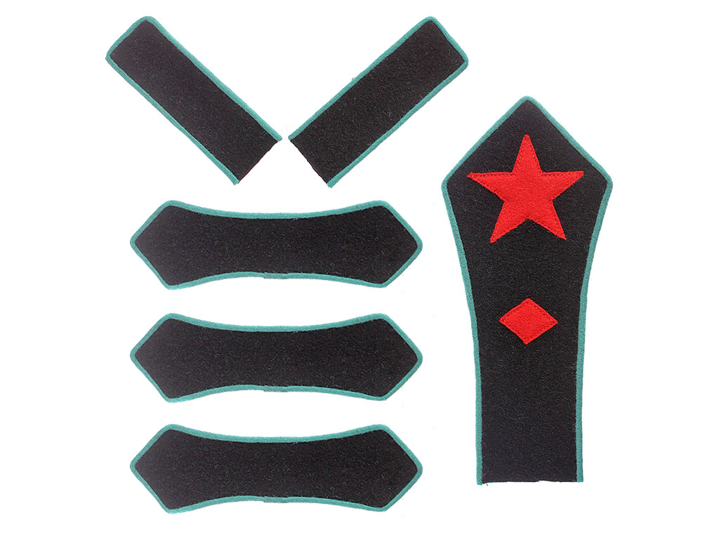 |Знаки железнодорожных войск РККА обр. 1922 года, состоящие из петлиц, разговоров и нарукавного клапана на гимнастерку/френч командира бригады, комплект РККА, копия