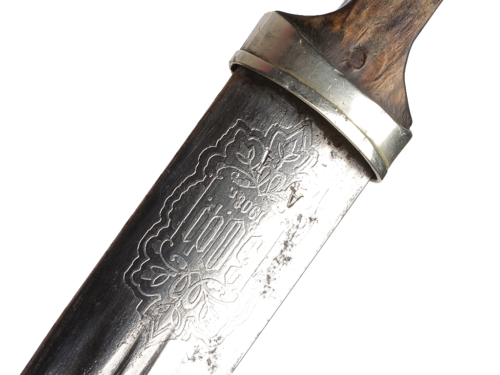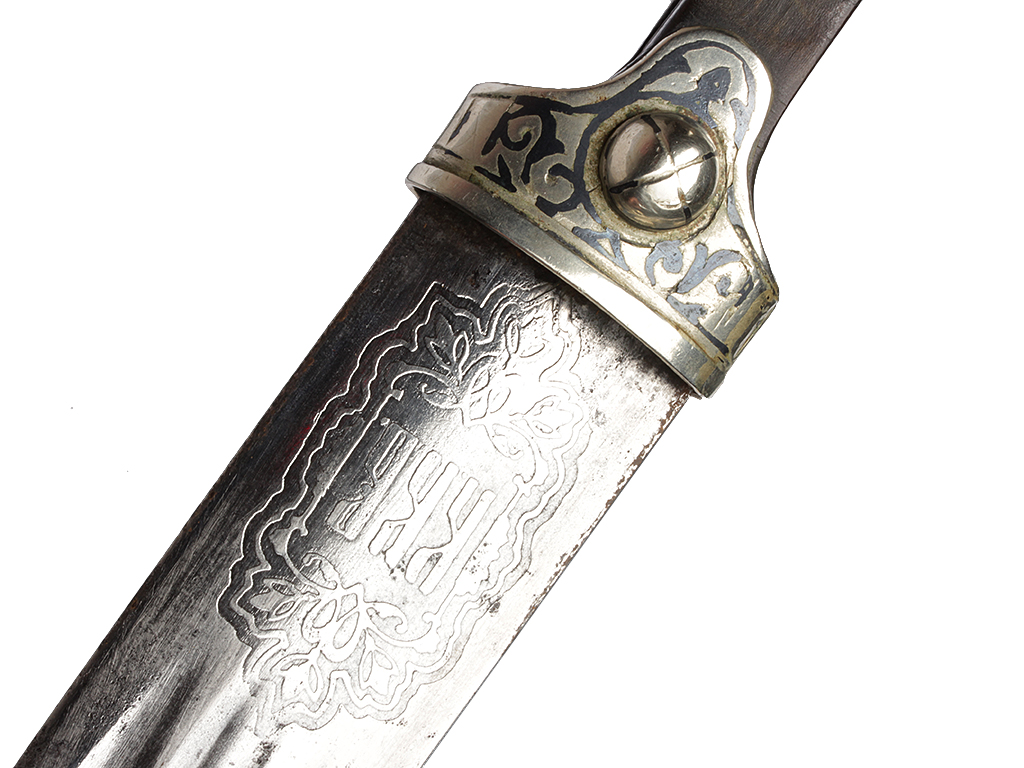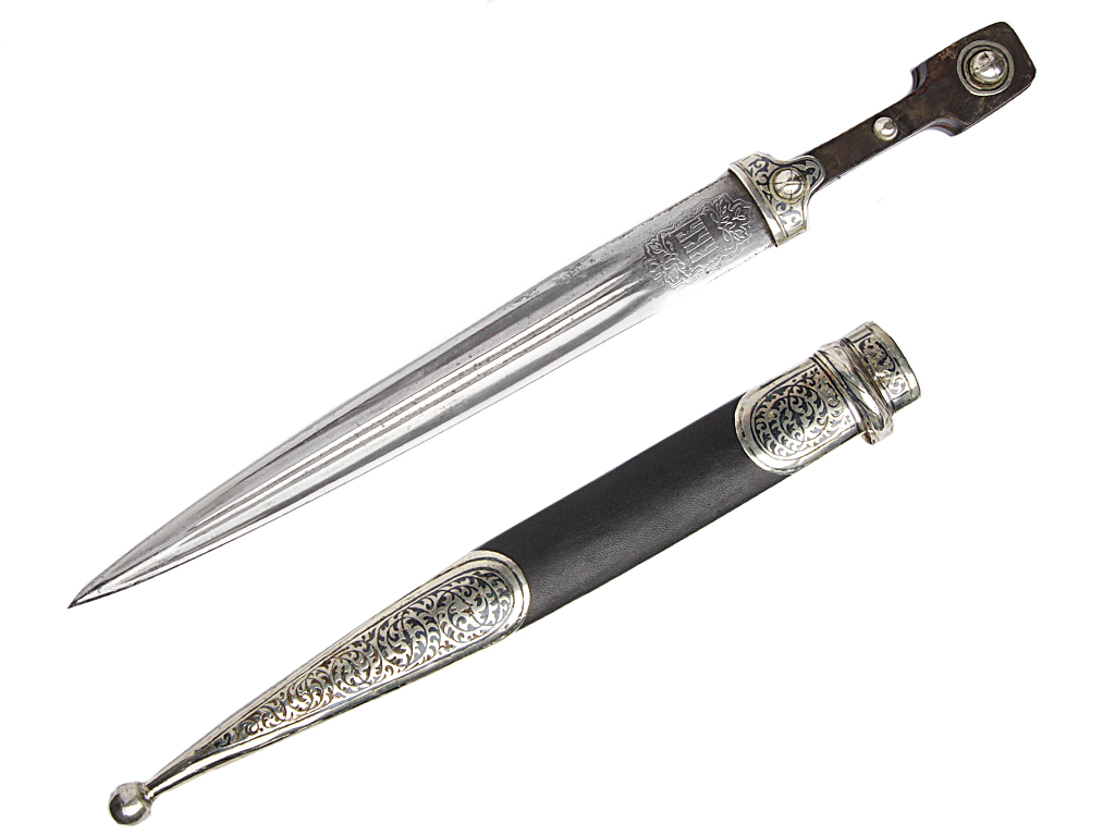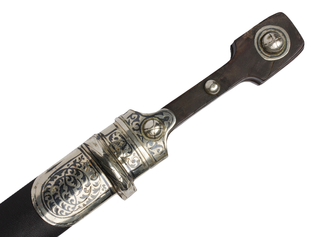 Кинжал Кубанского казачьего войска в оправе белого металла, изготовленный в 1908 году.
