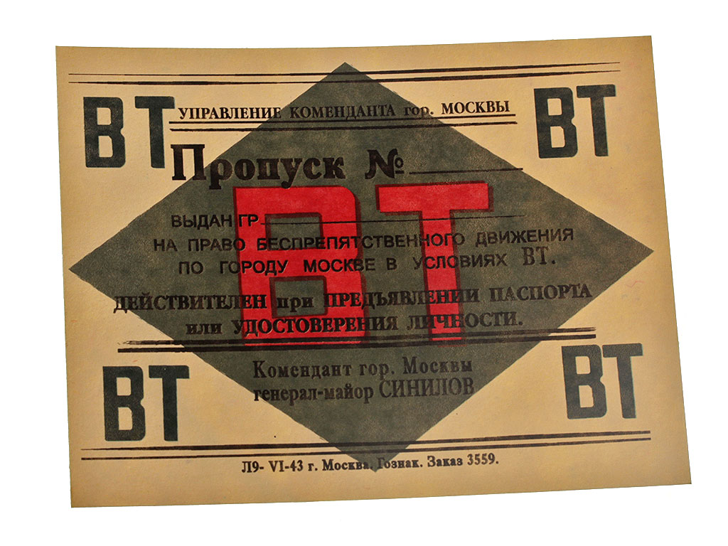 |Пропуск для движения по Москве в условиях воздушной тревоги. СССР, копия
