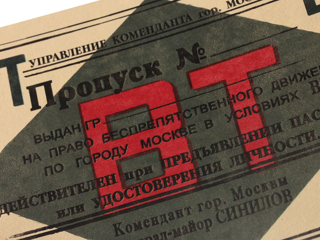 Бланк персонального пропуска, датированный июнем 1943 года. Пропуск давал право беспрепятственного движения по городу Москве в условиях объявленной воздушной тревоги. Заверялся печатью комендатуры и подписью коменданта Москвы генерал-майора Синилова. Документ выдавался как гражданским лицам (в основном из числа партийных и хозяйственных ответственных работников), так и военнослужащим.
