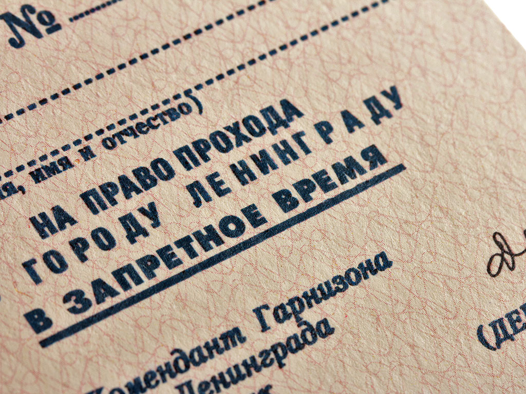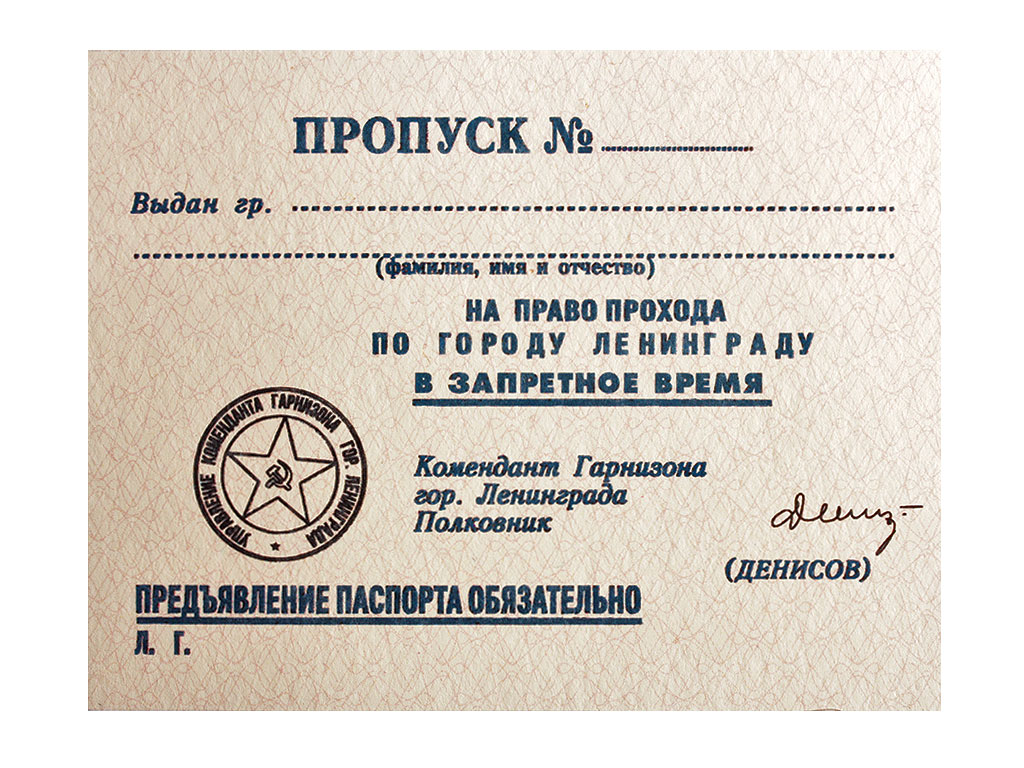 |Пропуск на право прохода по городу Ленинграду в запретное время, СССР, копия