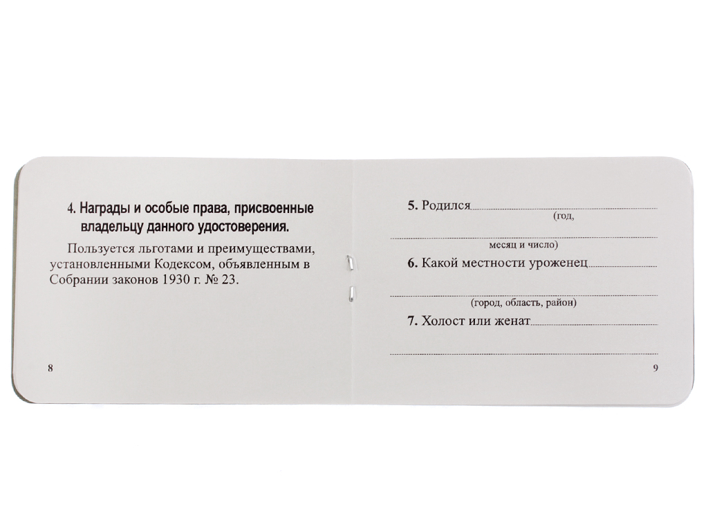 Орденская книжка (тип 1, вариант 1939 года). СССР, копия