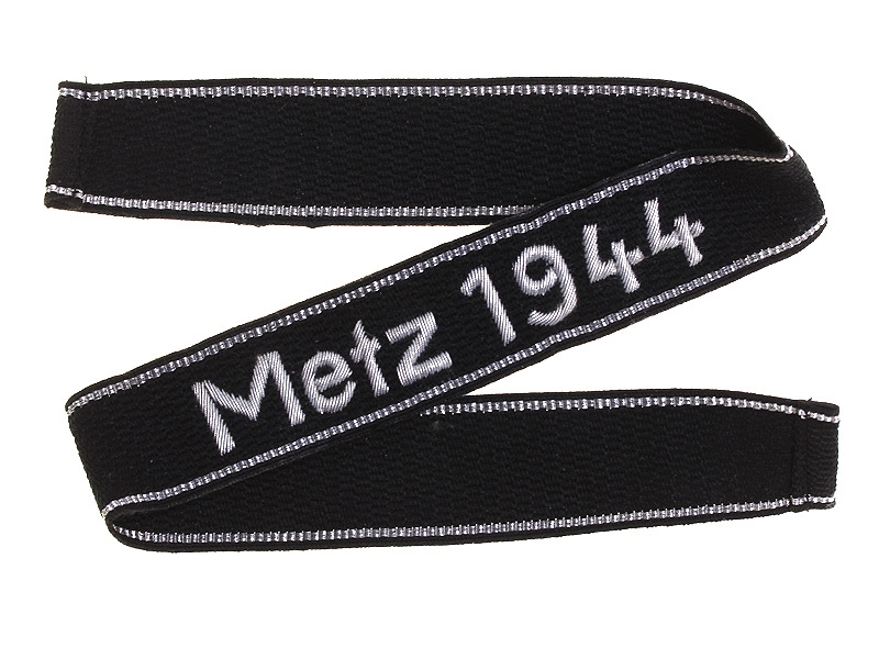 Манжетная лента "Мец 1944" была учреждена 24 октября 1944 года для вручения военнослужащим, участвовавшим в обороне города Мец в период с 27 августа по 25 сентября 1944 года.