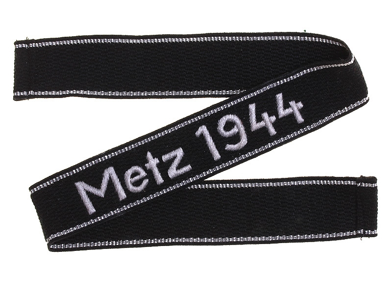 Манжетная лента "Мец 1944" была учреждена 24 октября 1944 года для вручения военнослужащим, участвовавшим в обороне города Мец в период с 27 августа по 25 сентября 1944 года.