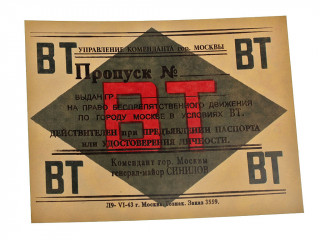 Пропуск для движения по Москве в условиях воздушной тревоги. СССР, копия...