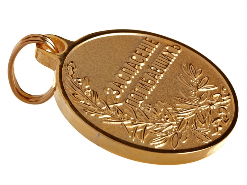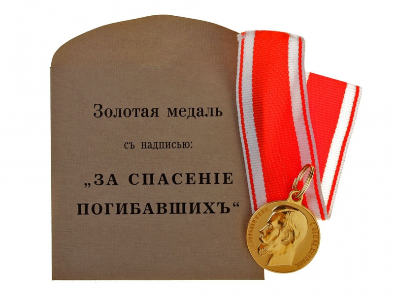Медалью награждали «за подвиги человеколюбия, с опасностью собственной жизни совершенные, но не подходящие под действие орденских статутов». В17 апреля 1828 года на основании Положения Комитета министров, утвержденного императором Николаем I, была учреждена серебряная медаль «За спасение погибавших». Этой медалью награждали российских граждан за спасение людей при различных трагических обстоятельствах: во время пожаров, стихийных бедствий и тому подобное. Диаметр медали - 50 мм. На лицевой стороне - поплечное изображение императора с круговой надписью: «Б. М. Николай I Императоръ и самодержецъ Всеросс.». На обратной стороне по кругу изображен венок из дубовых листьев, перевязанный вверху и внизу лентой, как символ гражданской доблести, внутри крупная горизонтальная надпись: «За спасенiе погибавшихъ». Вручалась на широкой шейной ленте ордена св. Владимира.