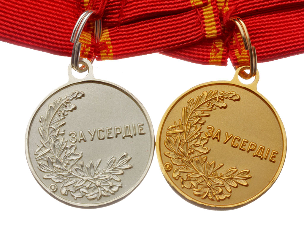 - Медаль за усердие с портретом Николая II, золото;