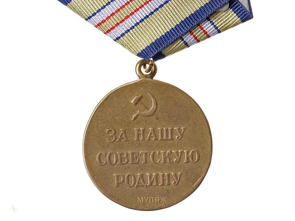 На оборотной стороне медали надпись “ЗА НАШУ СОВЕТСКУЮ РОДИНУ”. Над надписью изображение серпа и молота.