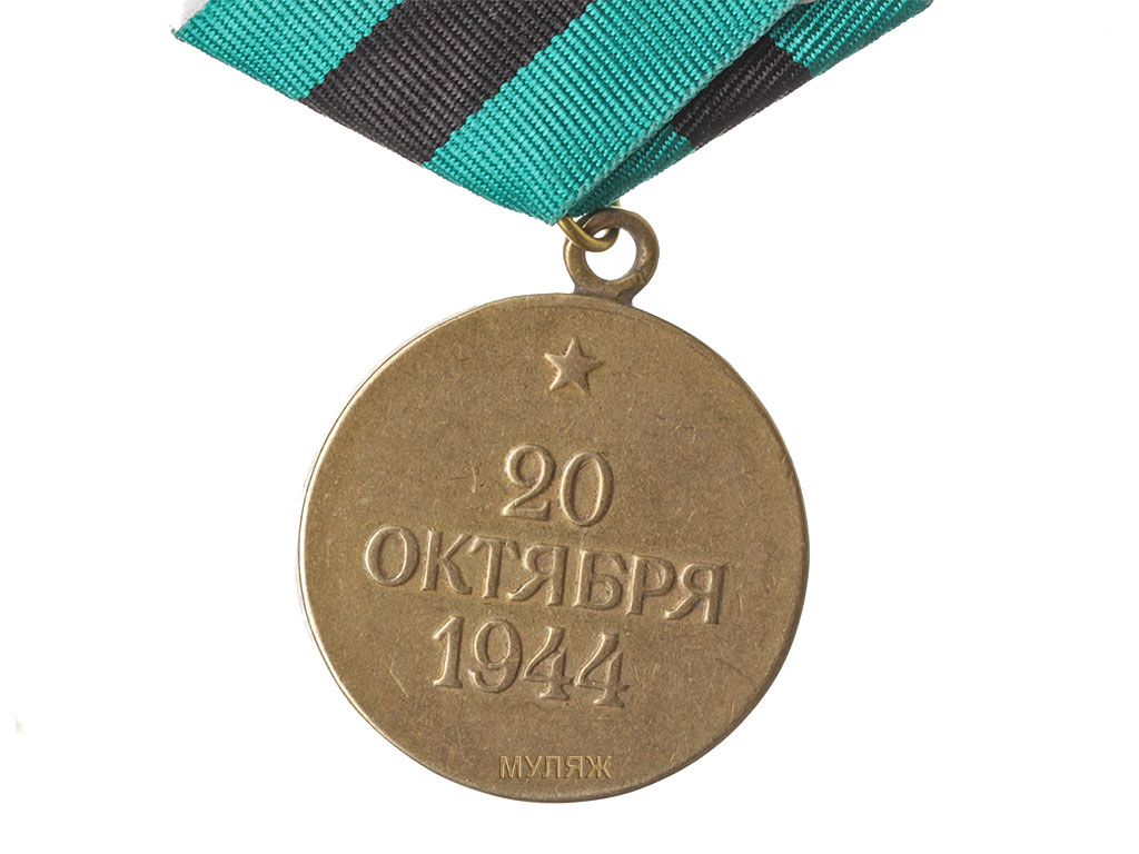 На оборотной стороне медали дата освобождения Белграда - “20 октября 1944”, над датой пятиконечная звездочка.
