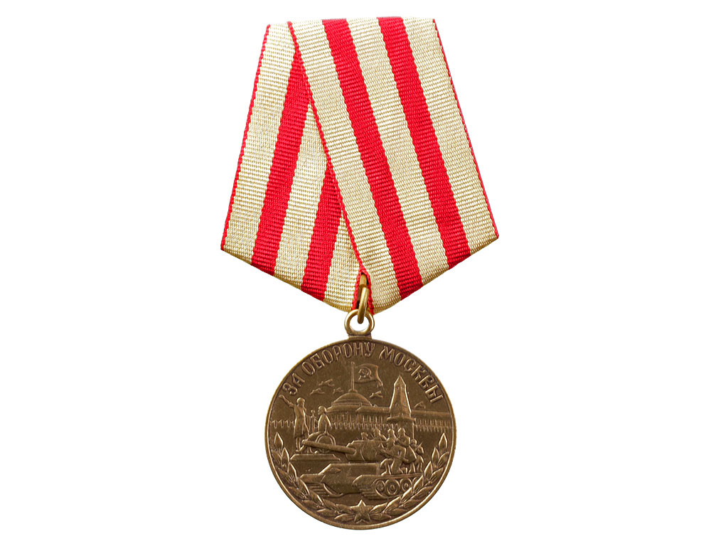 Медаль “За оборону Москвы” изготовляется из латуни и имеет форму правильного круга диаметром 32 мм.