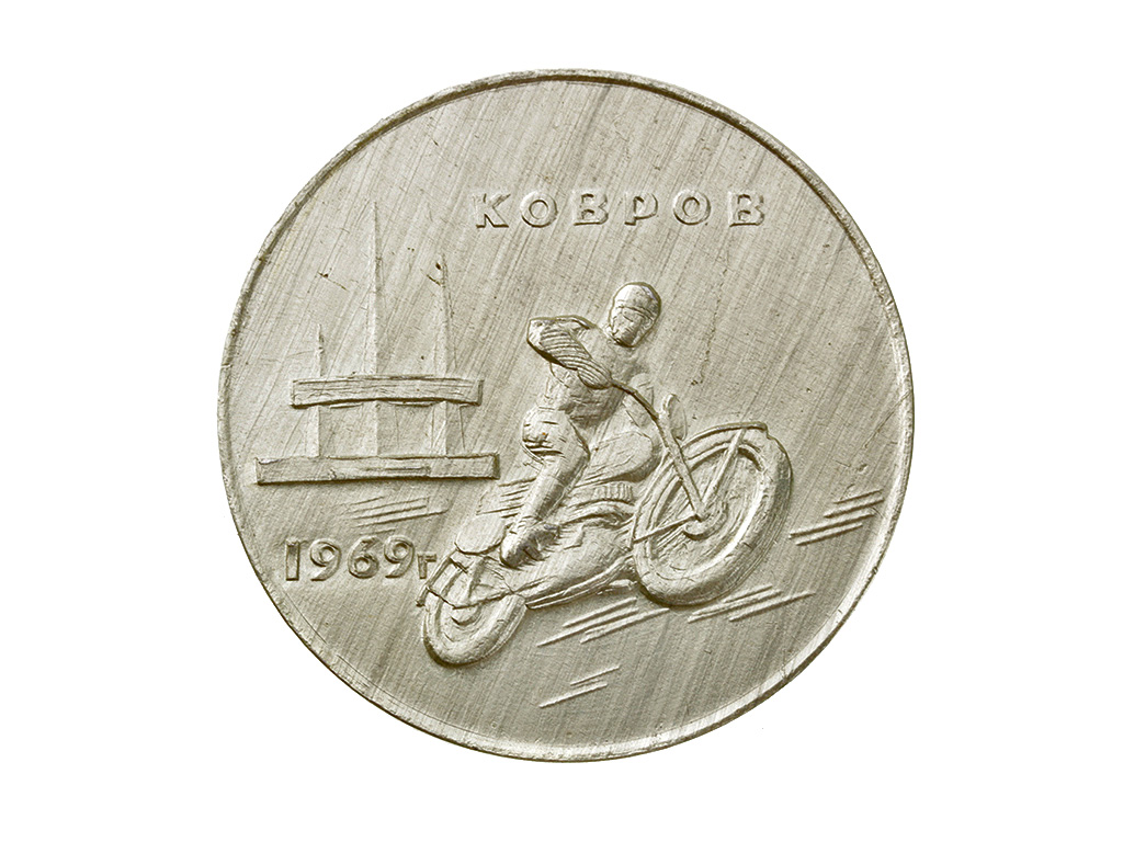 Памятная настольная медаль "13-й зимний традиционный мотокросс, Ковров, 1969 год". Алюминий.