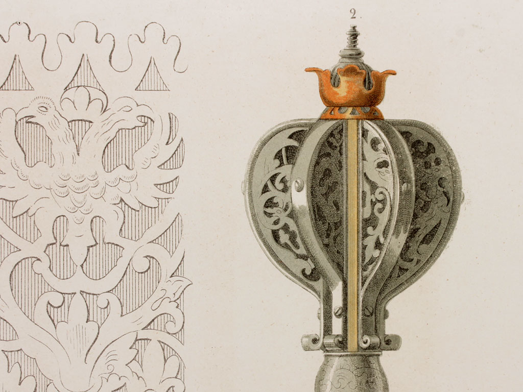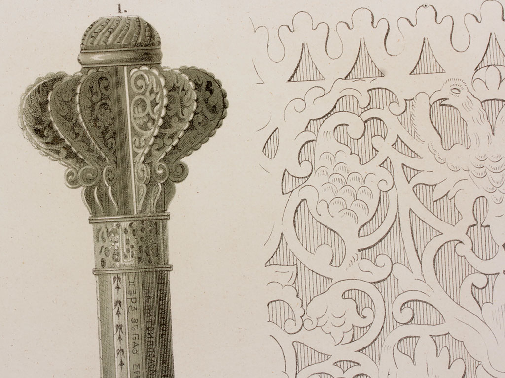 Лист из знаменитого и самого дорогого в 19 веке русского издания - "Тщательнейшие и достоверные рисунки академика Ф. Солнцева с исторических и художественных сокровищ.".