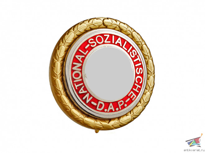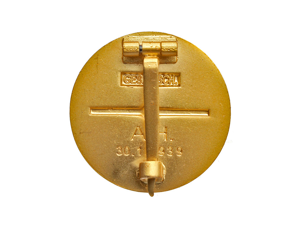 Официальное название - "Золотой почетный знак НСДАП". Учрежден 9 ноября 1933 года по указанию Адольфа Гитлера в ознаменование десятой годовщины Пивного путча. Золотым знаком были награждены первые 100 000 членов партии, состоявшие в ней непрерывно с 1925 года.