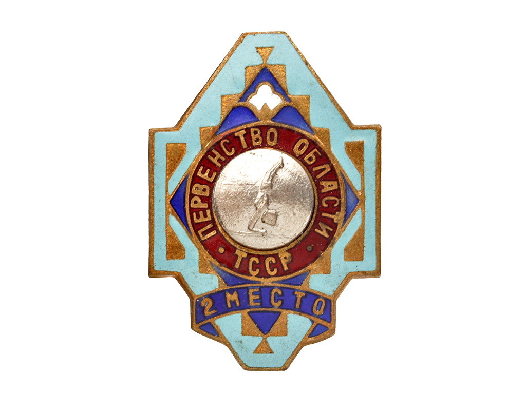 Значок "Первенство области ТССР. 2 место". Томпак, эмаль.