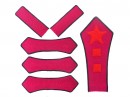 Размер клапана: длина в готовом виде (не считая запаса на подгиб) - 18 см, ширина внизу - 5 см, по середины длины - 6 см, расстояние между вершинами углов в широкой части - 8,5 см, расстояние линии, соединяющей вершины углов в широкой части от вершины клапана - 4,5 см.