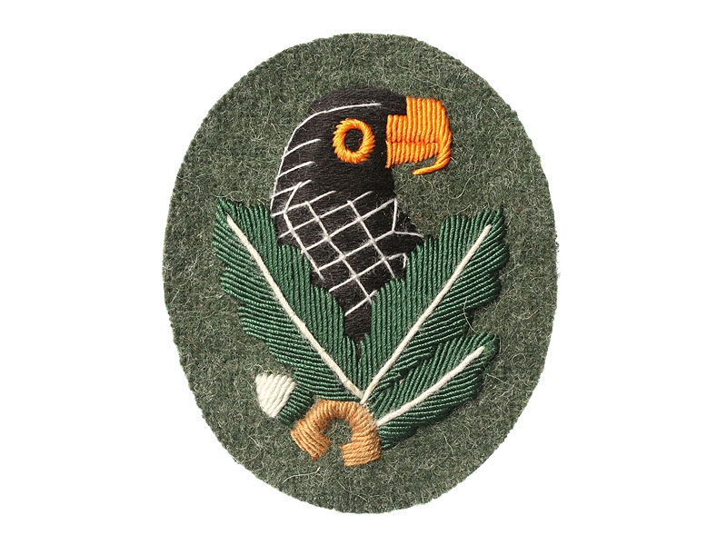 Нарукавная нашивка немецкого снайпера изготавливалась из стандартного армейского сукна цвета фельдграу (серый). Имела овальную форму размером 70 мм повысоте и 55 мм по ширине. На ней машинным или ручным способом вышивалась чёрная голова орла с жёлтым клювом, с тремя зелеными дубовыми листьями и желудем.