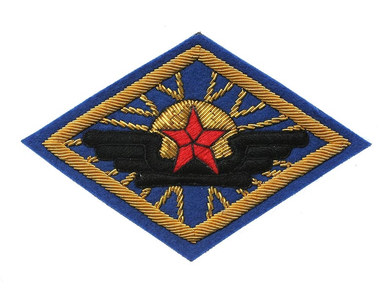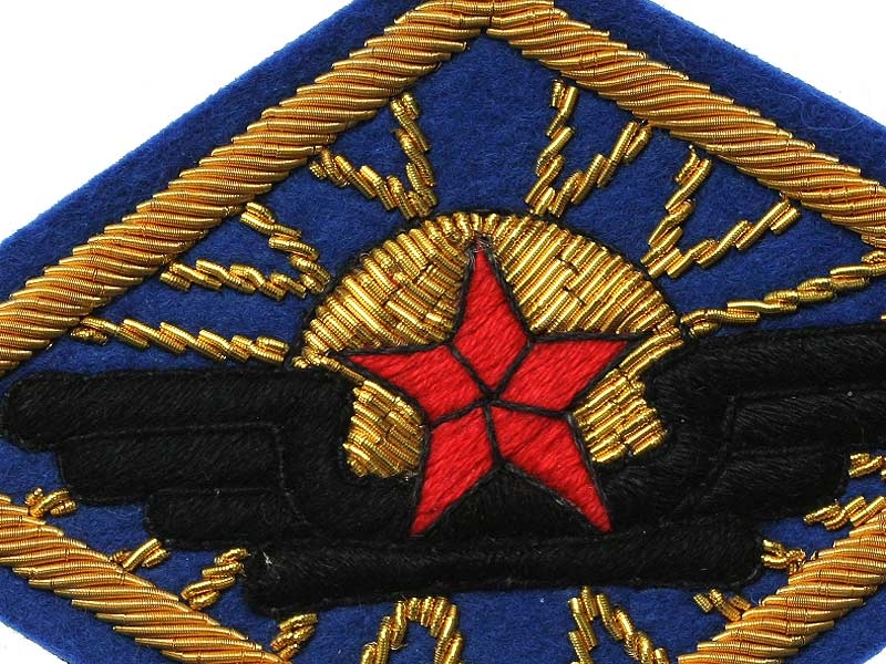 Голубое поле, золотое шитье, крылья и пропеллер самолет вышиты черной нитью - единый образец для частей авиации, с 1922 г. - военные и морские летчики (приказ Главного начальника снабжений 6 марта 1922 г. № 899).