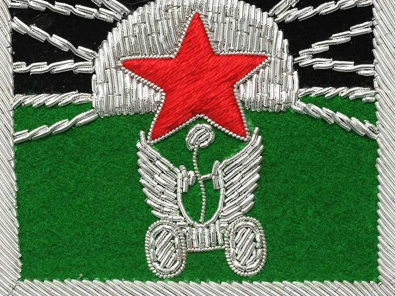 Копия хорошего качества. Эмблема изготовлена в соответствии с приказами РВСР: от 3 апреля 1920 г. № 572 - нарукавные знаки РККА и от 31 января 1922 № 322 - эмблемы инженерных войск.