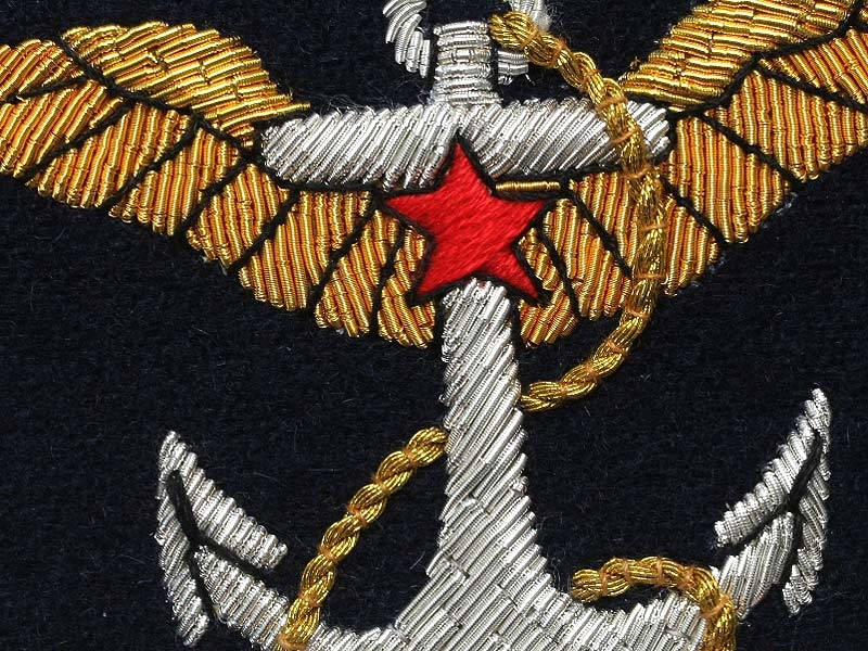 Темно-синее сукно, вышивка серебром и золотом.