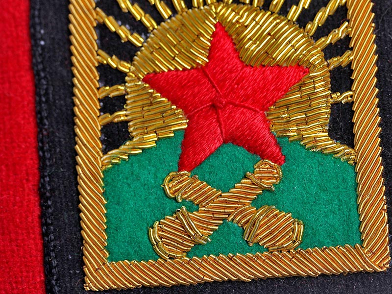 Черное поле, золотое шитье - в таком исполнении знак присваивался всем лицам, состоявшим в частях РККА, получившим "Красное Знамя" за боевое отличие.