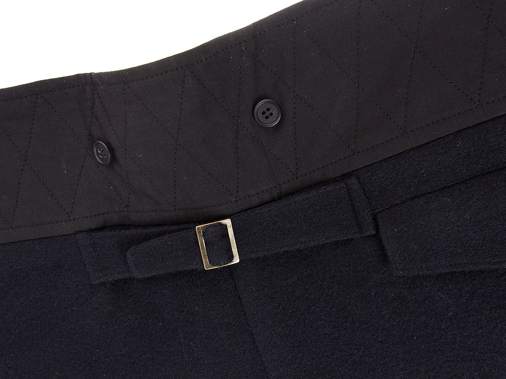 Командирские бриджи (галифе) изготовлены из темно-синей полушерстяной ткани с красным кантом.