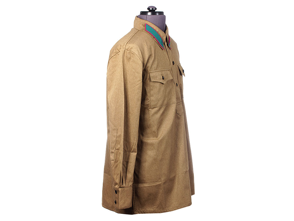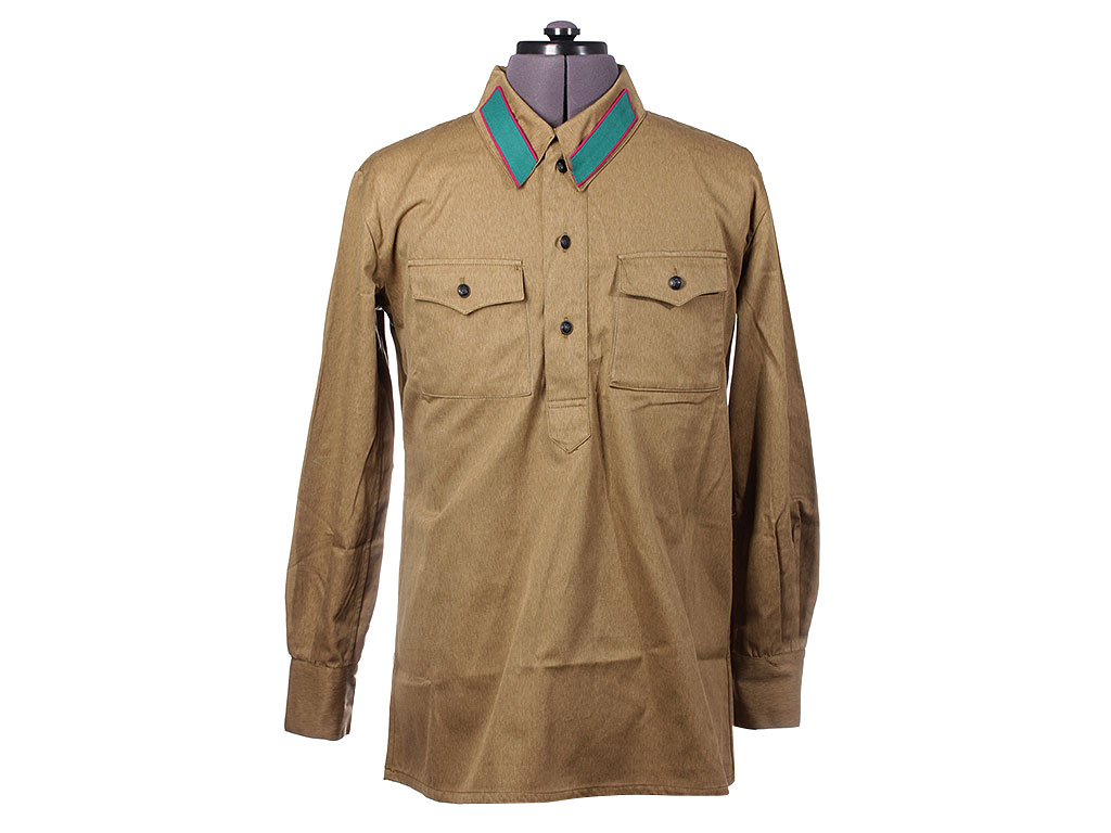 Изготовлена из хлопчатобумажной ткани защитного цвета с отложным воротником, застегивающимся на один крючок. На концах воротника нашиты петлицы установленного образца. Рубаха имеет нагрудную планку с застежкой на три пуговицы и два нагрудных пристроченных кармана с клапанами на одной пуговице. Рукава имеют обшлага с двумя пуговицами.