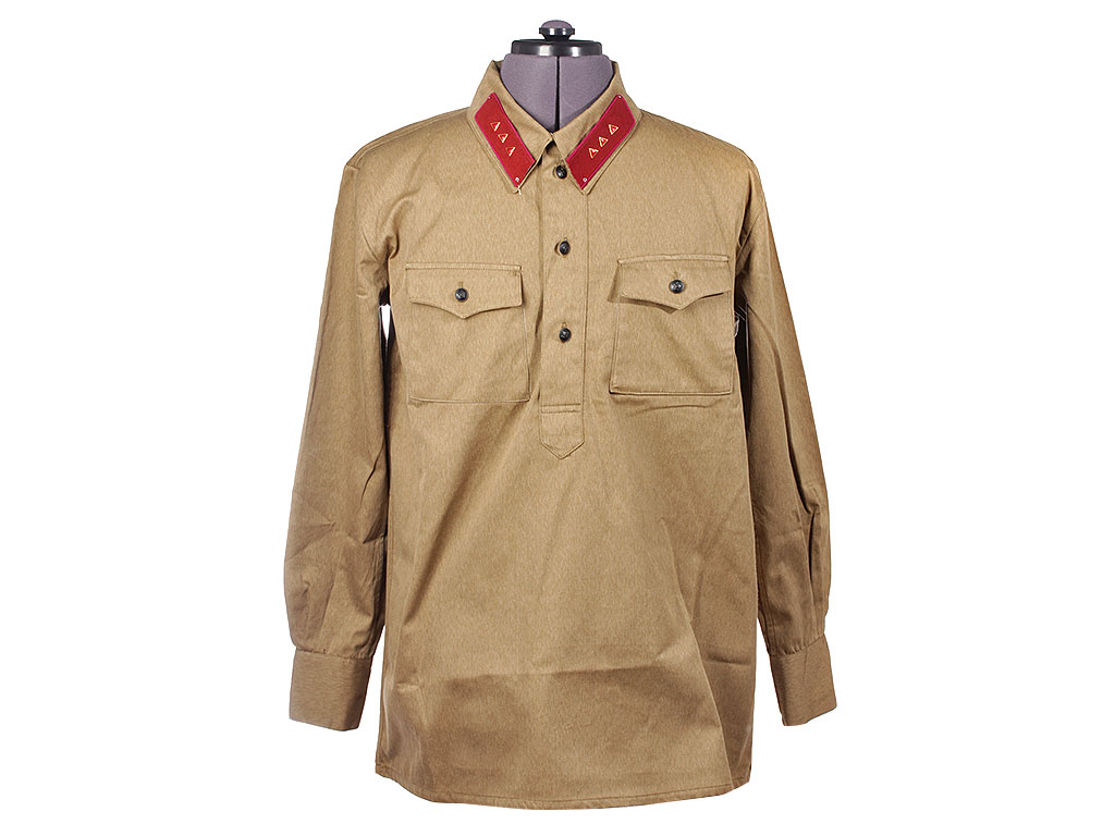 Изготовлена из хлопчатобумажной ткани защитного цвета с отложным воротником, застегивающимся на один крючок. На концах воротника нашиты петлицы установленного образца. Рубаха имеет нагрудную планку с застежкой на три пуговицы и два нагрудных пристроченных кармана с клапанами на одной пуговице. Рукава имеют обшлага с двумя пуговицами.