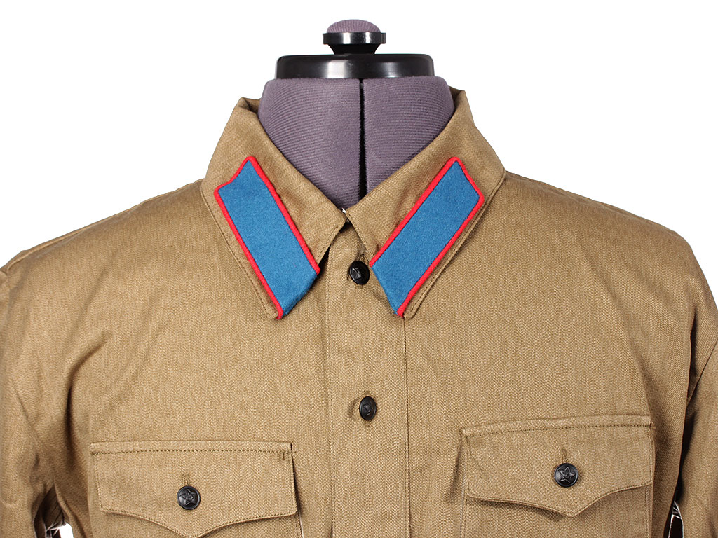 Изготовлена из хлопчатобумажной ткани защитного цвета с отложным воротником, застегивающимся на один крючок. На концах воротника нашиты петлицы установленного образца. Рубаха имеет нагрудную планку с застежкой на три пуговицы и два нагрудных пристроченных кармана с клапанами на одной пуговице. Рукава имеют обшлага с двумя пуговицами.