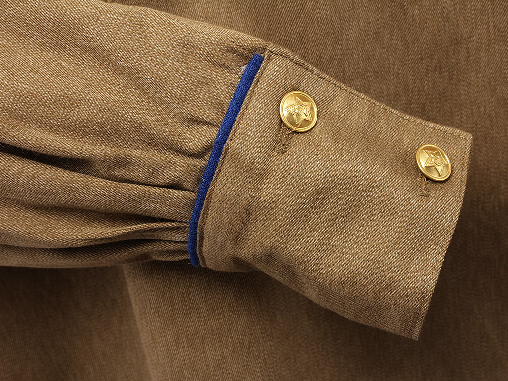 Рукава - двухшовные, с четырьмя складками внизу, с разрезными обшлагами-манжетами, с застежкой на две малые форменные пуговицы. На обшлагах гимнастерка имеет кант, зеленый для пограничных войск и васильковый для всех остальных.