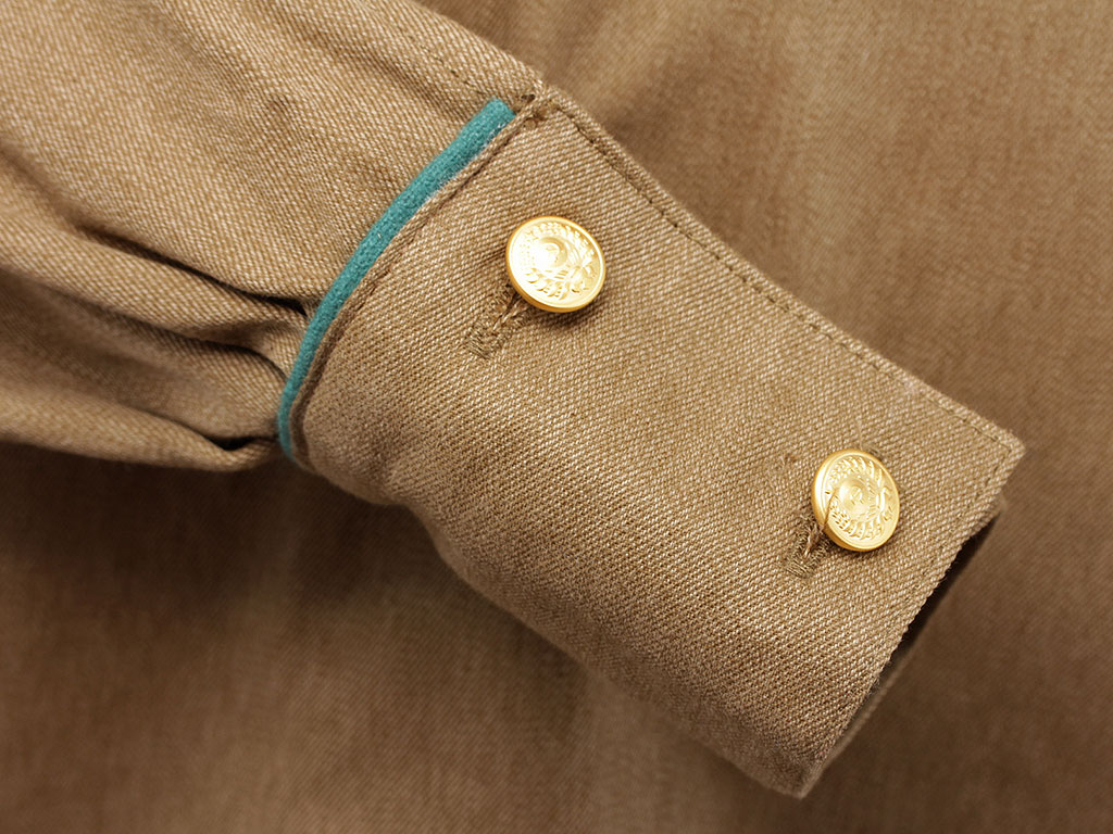 Рукава - двухшовные, с четырьмя складками внизу, с разрезными обшлагами-манжетами, с застежкой на две малые форменные пуговицы. На обшлагах гимнастерка имеет кант, зеленый для пограничных войск и васильковый для всех остальных.