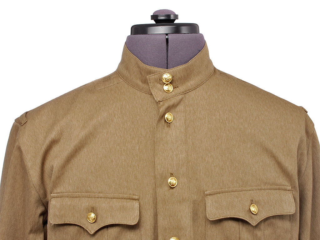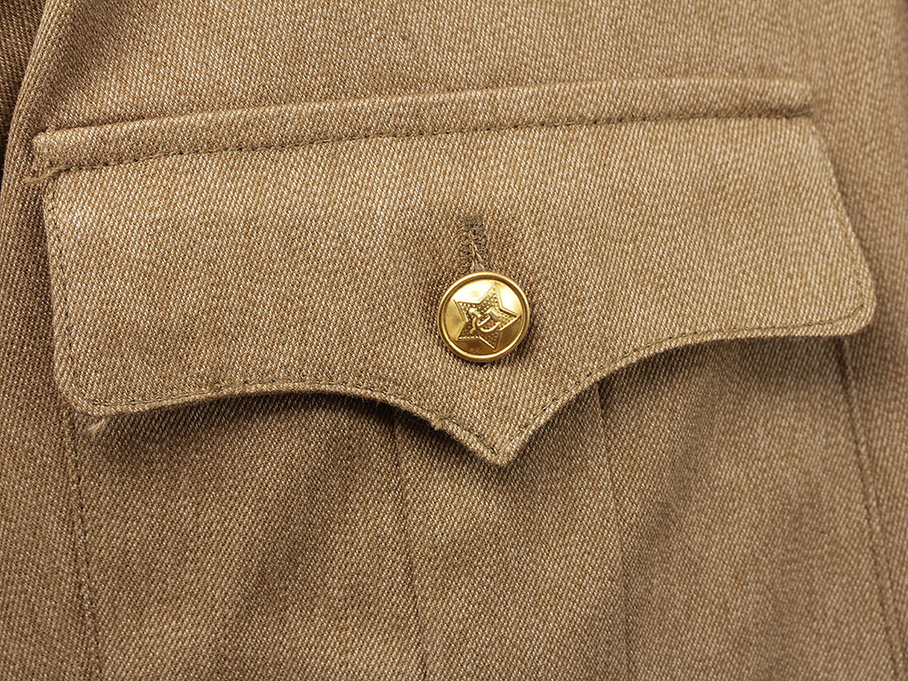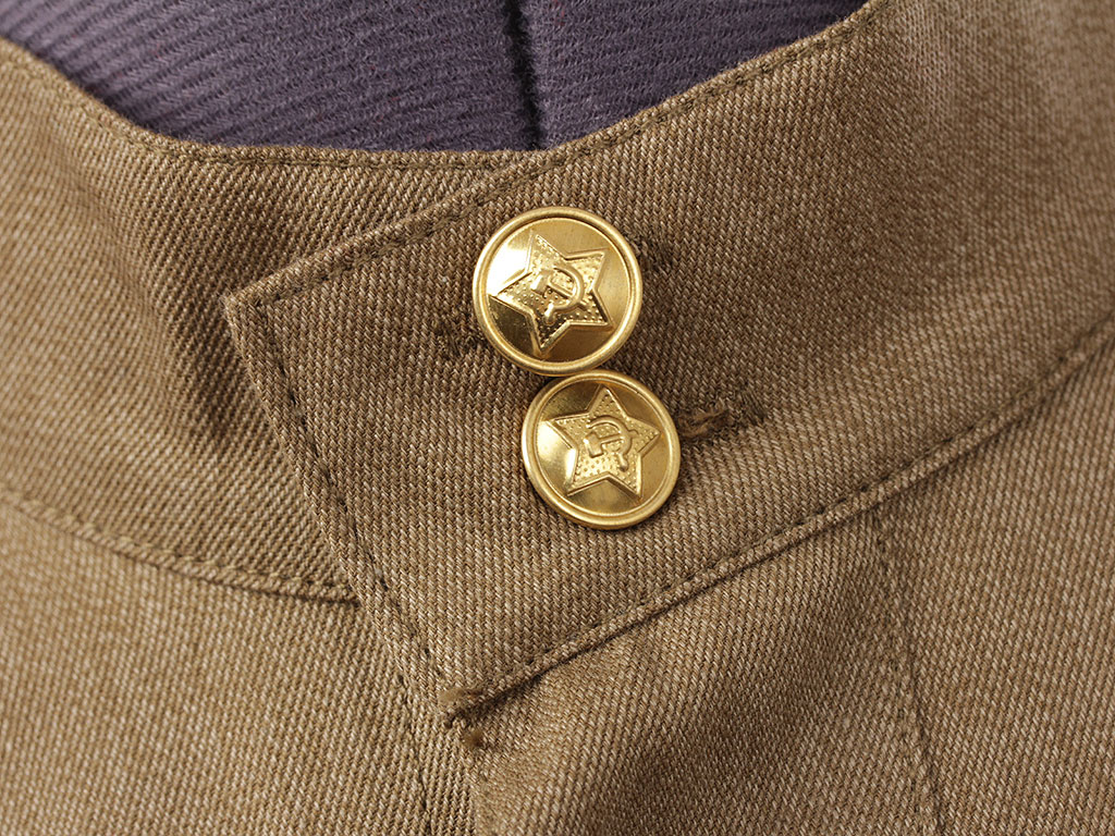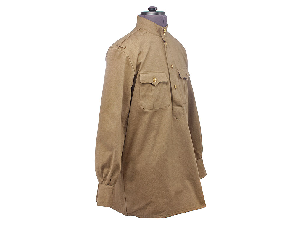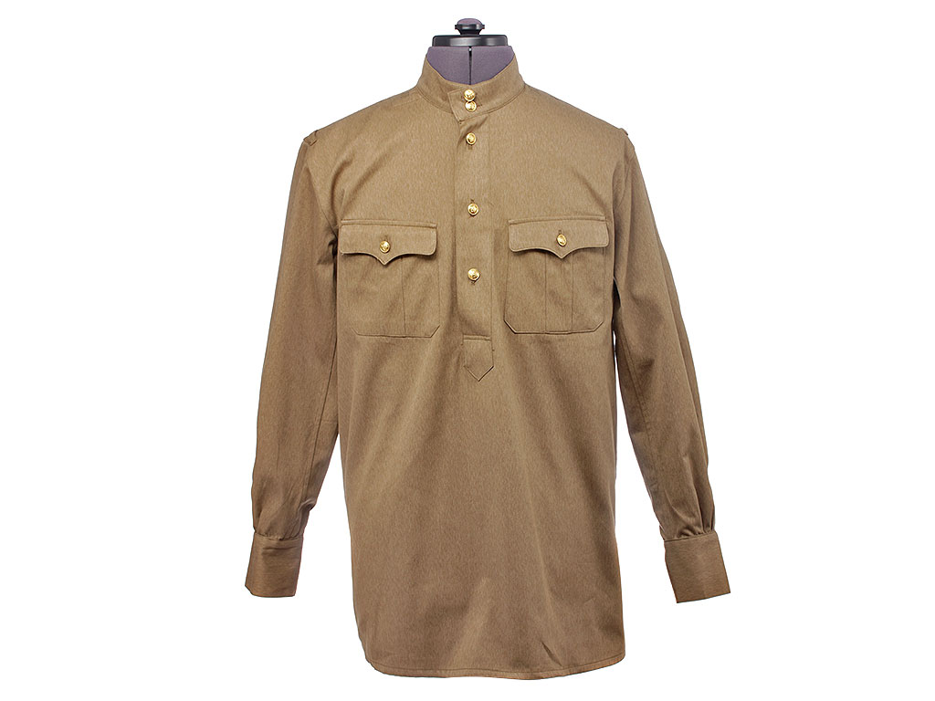 Гимнастерка с мягким стоячим воротником, застегивающимся на две форменные пуговицы малого размера. Передний разрез гимнастерки прикрыт планкой и имеет открытую застежку на трех малых форменных пуговицах. На груди два накладных кармана с трехмысковыми клапанами и бантовой складкой, с застёжкой на одну малую форменную пуговицу.