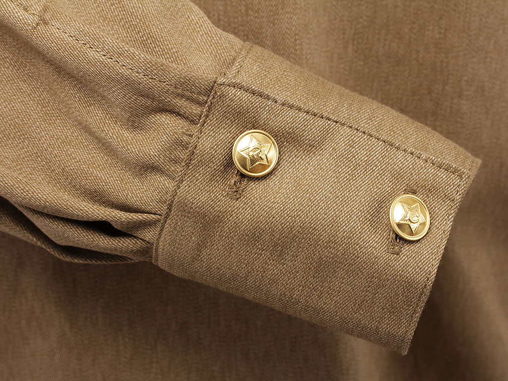Рукава - двухшовные, с четырьмя складками внизу, с разрезными обшлагами-манжетами, с застежкой на две малые форменные пуговицы. На обшлагах гимнастерка имеет кант, зеленый для пограничных войск и васильковый для всех остальных.