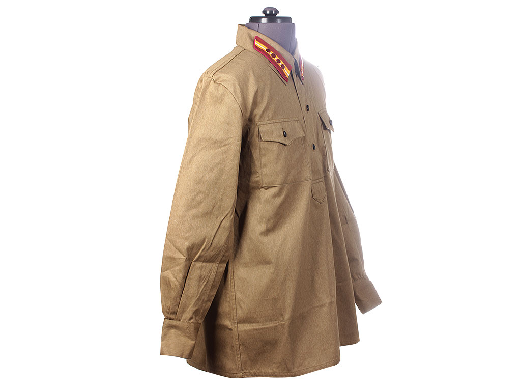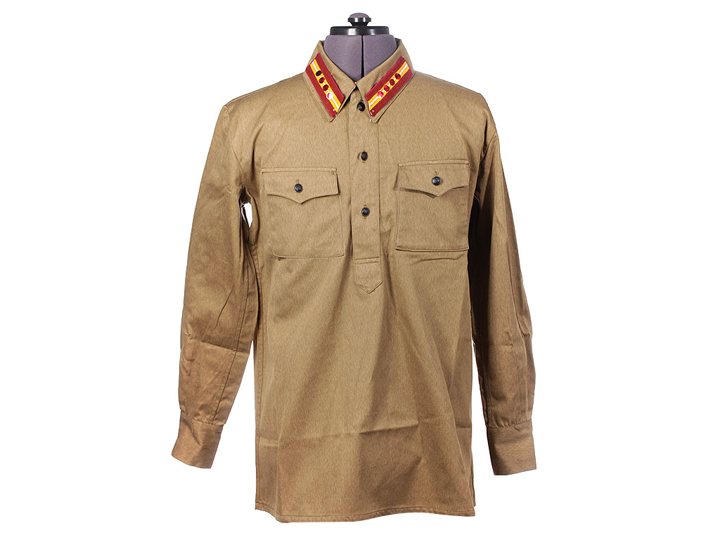 Изготовлена из хлопчатобумажной ткани защитного цвета с отложным воротником, застегивающимся на один крючок. На концах воротника нашиты петлицы установленного образца. Рубаха имеет нагрудную планку с застежкой на три пуговицы и два нагрудных пристроченных кармана с клапанами на одной пуговице. Рукава имеют обшлага с двумя пуговицами.