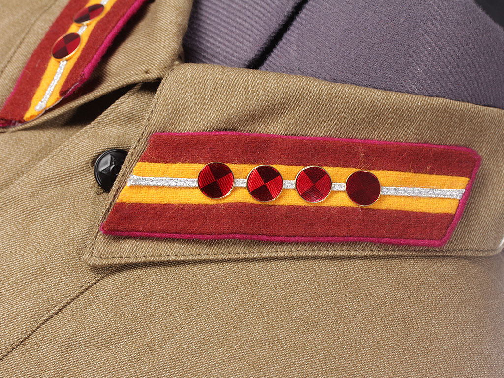 Копия высокого качества, ткань максимально приближена к оригиналу по качеству изготовления и фактуре. При изготовлении петлиц также в качестве образца были использованы оригинальные петлицы, введенные для Военизированной пожарной охраны НКВД и аппарата ГУПО Приказом НКВД № 285 от 16.06.1936 года.
