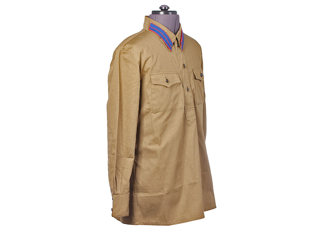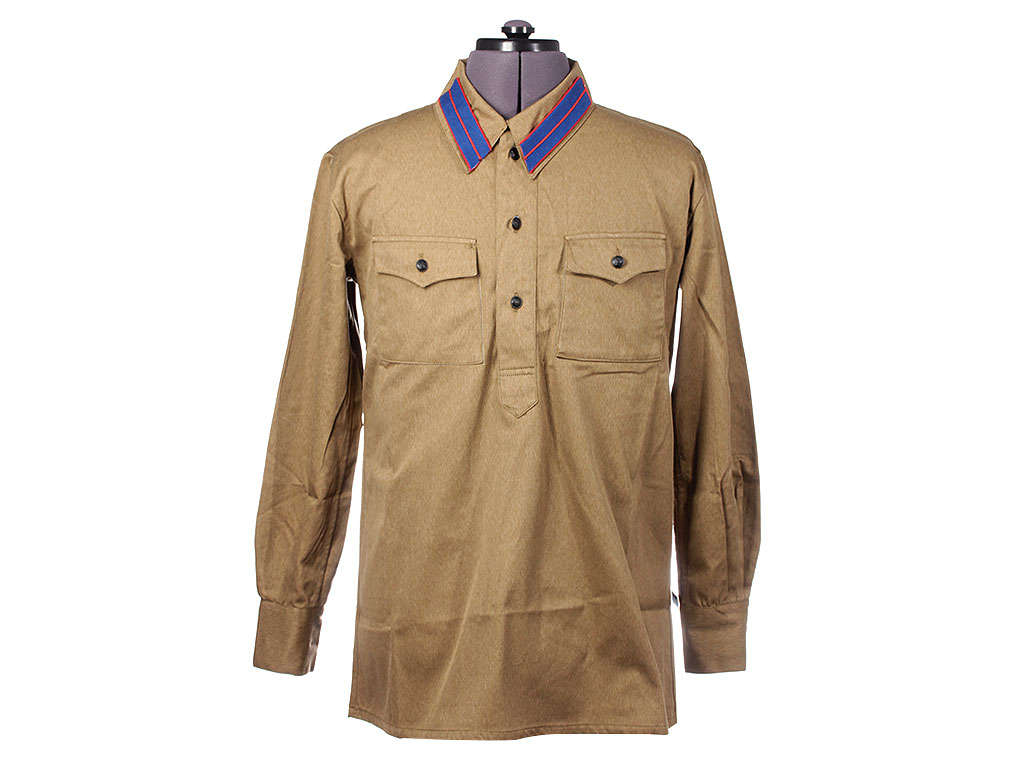 Изготовлена из хлопчатобумажной ткани защитного цвета с отложным воротником, застегивающимся на один крючок. На концах воротника нашиты петлицы установленного образца. Рубаха имеет нагрудную планку с застежкой на три пуговицы и два нагрудных пристроченных кармана с клапанами на одной пуговице. Рукава имеют обшлага с двумя пуговицами.