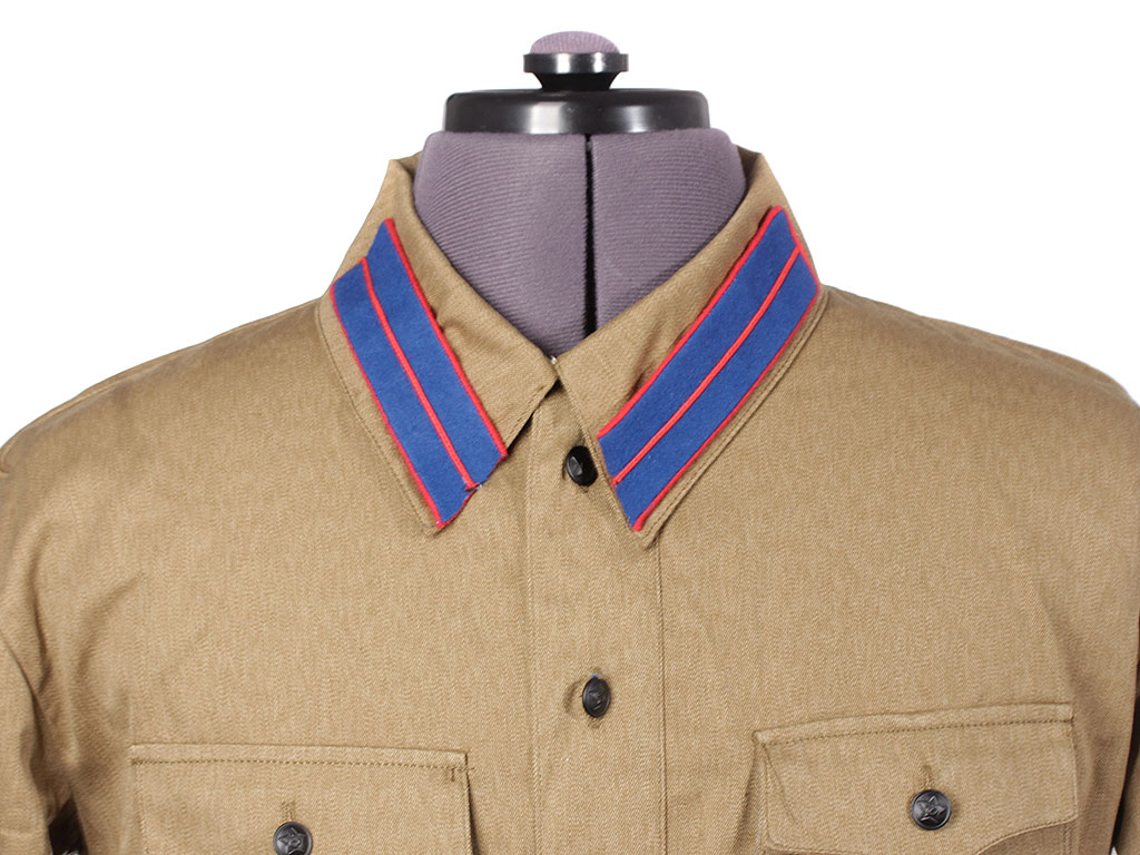 Летняя полевая хлопчатобумажная гимнастерка образца 1935 года с петлицами Главного управления лагерей и галифе в комплекте.