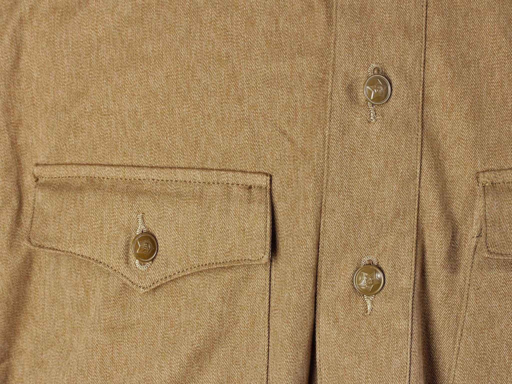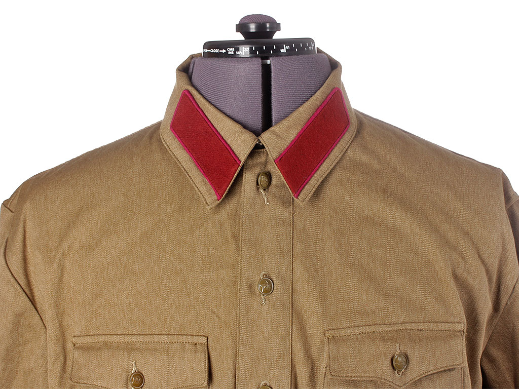 Летняя полевая хлопчатобумажная гимнастерка образца 1935/41 года со знаками различия рядового Внутренних Войск (ВВ) НКВД образца 1938 года.