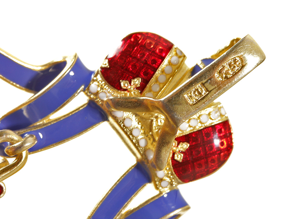 Изготовлен из латуни, золочение. Холодная эмаль.