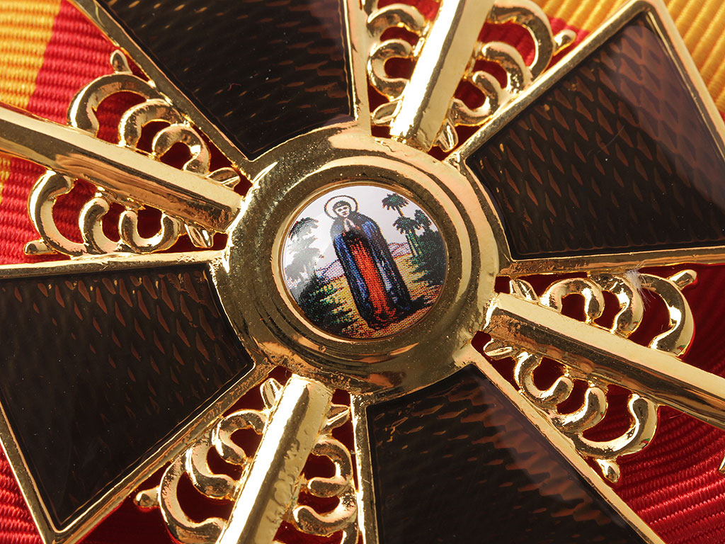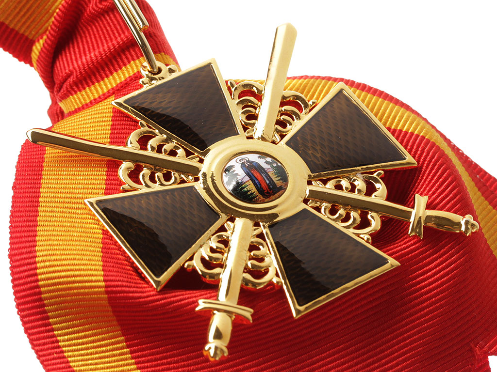 2 степень: такой же крест, как и 1 ст., но меньшего размера. Носился на шее, на орденской ленте шириной 4,5 см. Звезда не полагалась.