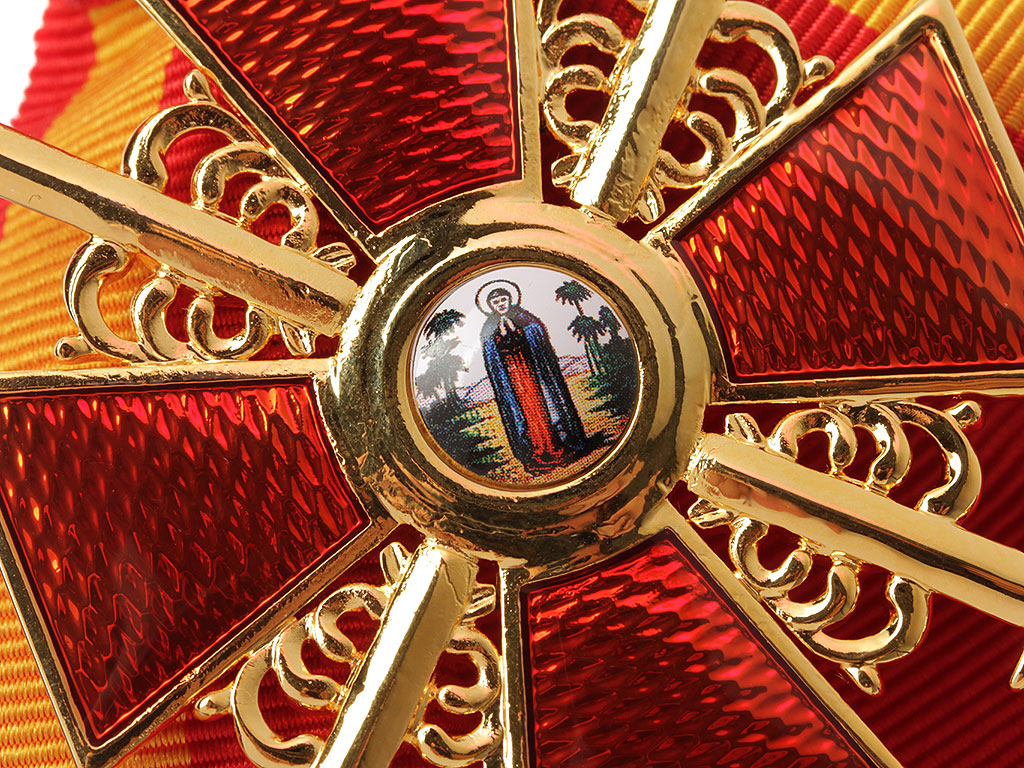 2 степень: такой же крест, как и 1 ст., но меньшего размера. Носился на шее, на орденской ленте шириной 4,5 см. Звезда не полагалась.