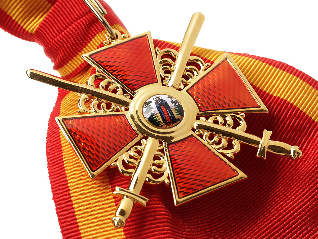Звезда ордена — серебряная, восьмиконечная. Носилась на правой стороне груди. В центральном медальоне звезды, на золотистом поле — красный крест, вокруг него на красном эмалевом фоне — девиз.