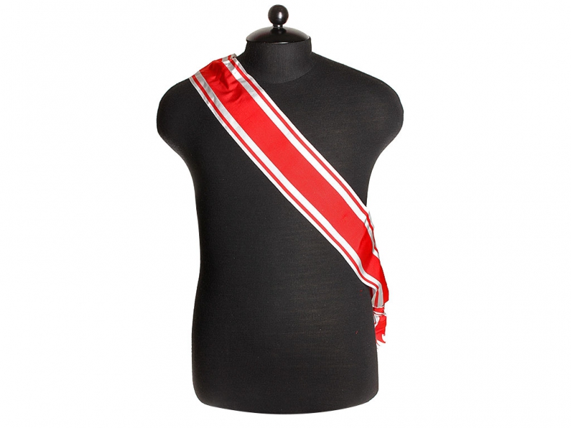 Плечевая лента ордена Святого Станислава, красно-белая лента (муаровая) ордена Святого Станислава первой степени, Россия, Копия. Ширина ленты - 10 см.