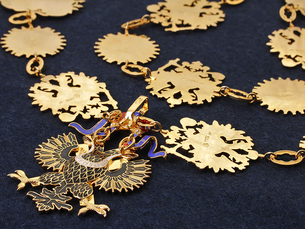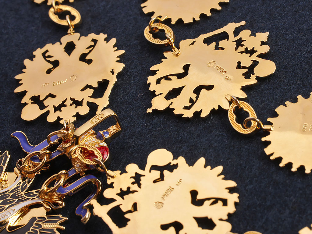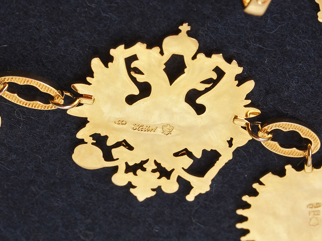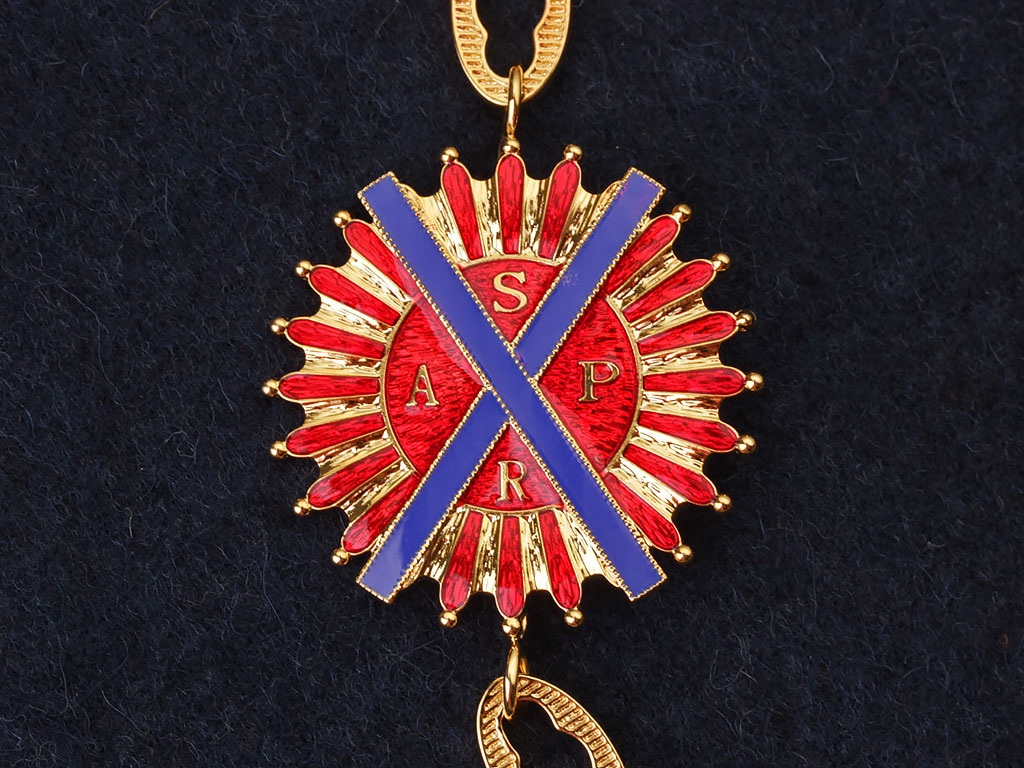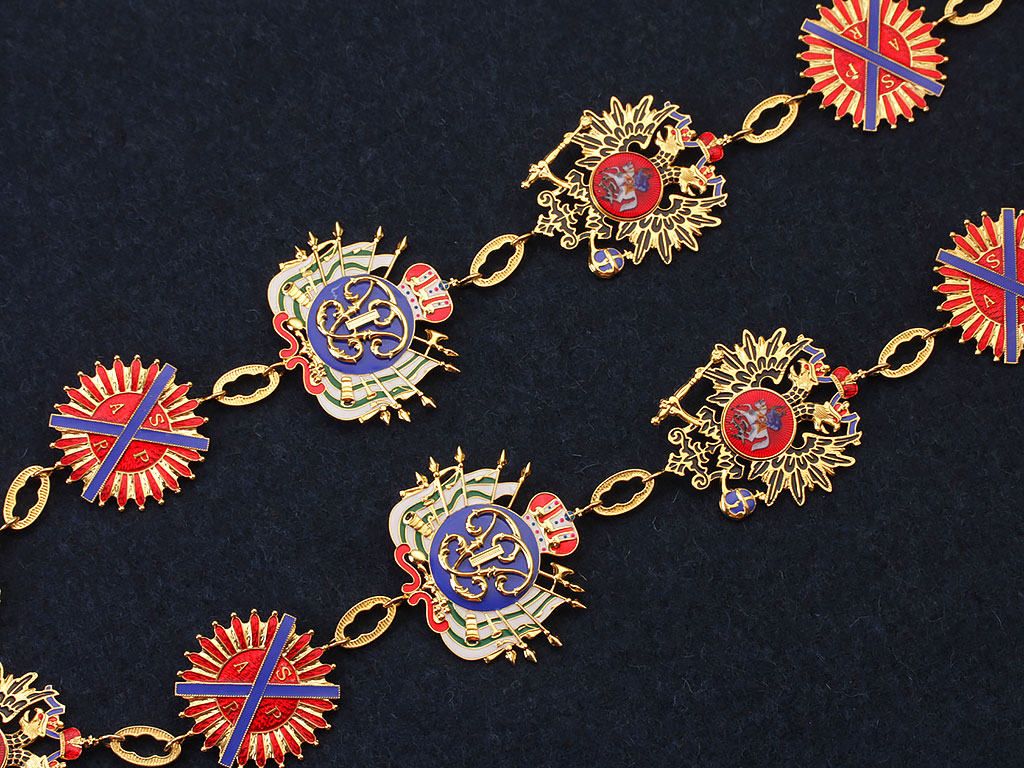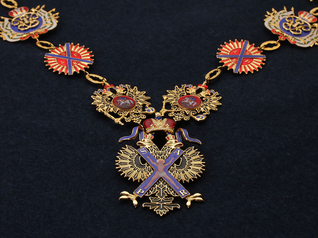 Шейная орденская цепь для ношения знака ордена Святого Апостола Андрея Первозванного - старейшего среди русских орденов и старшего, занимающего высшую ступеньку в иерархии государственных наград Российской империи.