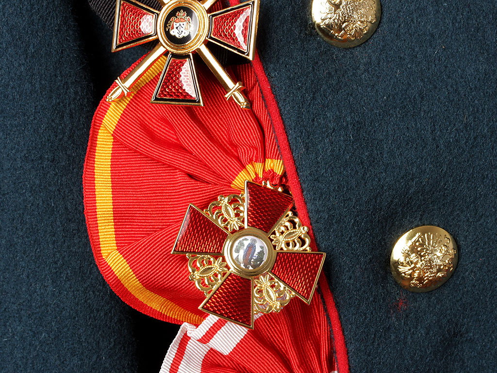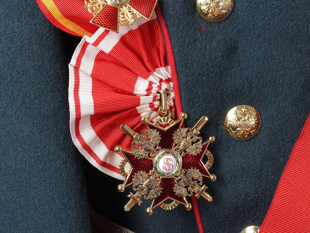 Розетка из шелковой георгиевской ленты (от шейного ордена) для ношения ордена на мундире лацканного типа при наличии ордена высшей степени либо вышестоящих орденов. Розетка имеет обметанную прорезь для крепления к пуговице.