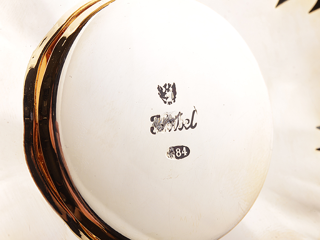 Изготовлена штампом, серебрение, золочение, эмаль.