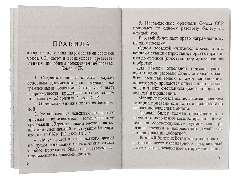 Орденская книжка не только подтверждала право ношения награды, в ней были прописаны и весьма ощутимые льготы и привилегии, которые давало орденоносцу государство. Орденская книжка - основной документ, вручаемый награжденному вместе с орденом. До появления орденских книжек награжденному вручалась особая грамота. Первые орденские книжки появились в 1936 году и были едиными для всех пяти орденов СССР, существовавших на тот момент. С течением времени внешний вид орденских книжек изменялся, однако ряд особенностей оставался неизменным. На обложке любой орденской книжки присутствует изображение государственного герба СССР. Листы орденской книжки выполнены из бумаги, содержащей водяные знаки. Любая орденская книжка имеет свой собственный серийный номер. В орденской книжке указана фамилия, имя и отчество награжденного, название награды и ее номер. В зависимости от особенностей орденской книжки, можно выделить несколько типов этого документа, сменяющих друг друга в хронологическом порядке.