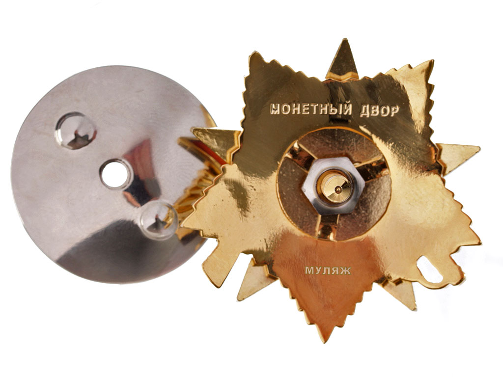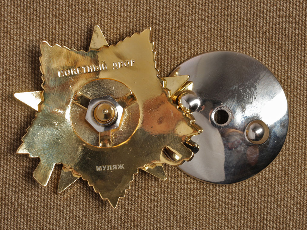 На оборотной стороне знак имеет нарезной штифт с гайкой для прикрепления ордена к одежде.