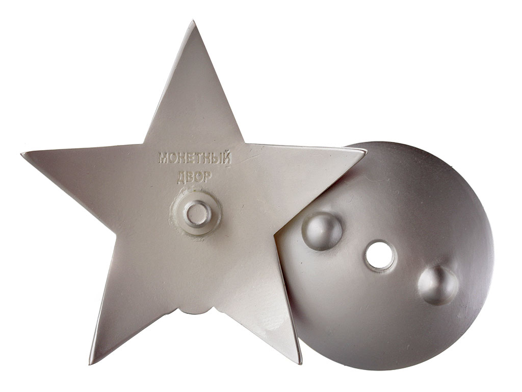 Представленный вариант в оригинале имеет клейма "Мондвор" (либо "Монетный двор"). Обратим внимание, что ордена Красной Звезды более поздних (послевоенных) выпусков внешне отличаются от представленного более закругленными концами лучей.