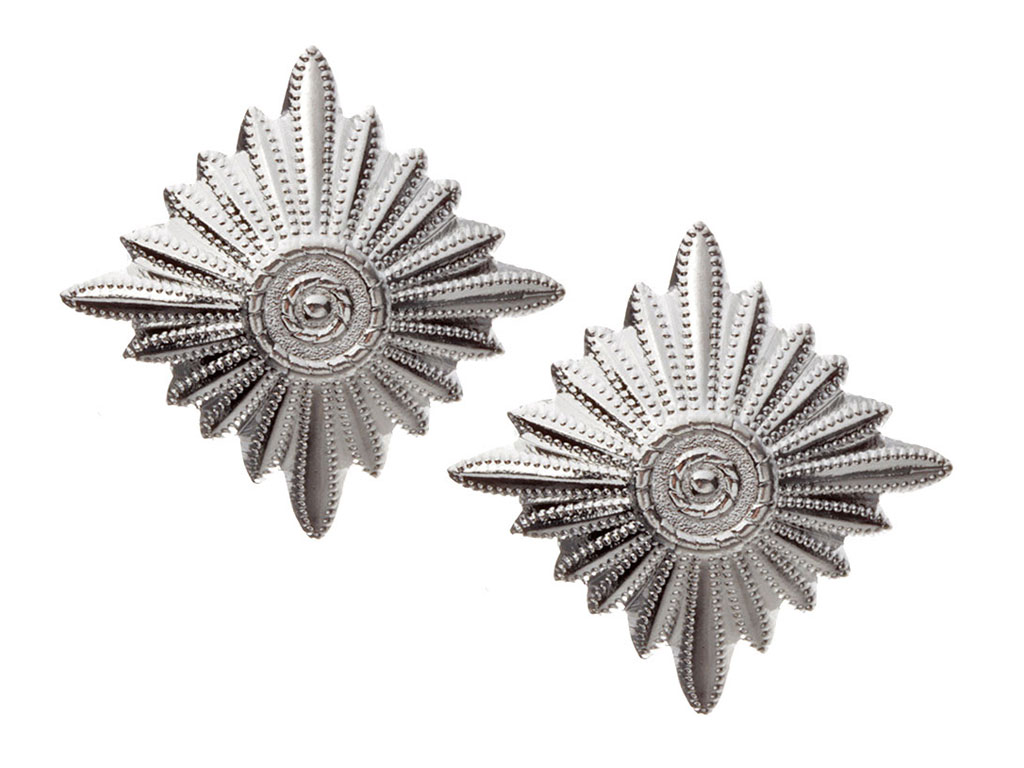 Пара серебряных четырехугольных рельефных звездочек на погоны офицеров Вермахта, а также погоны и петлицы войск СС (Waffen-SS). Каждая звездочка имеет пару кляммеров (усов) для крепления.
