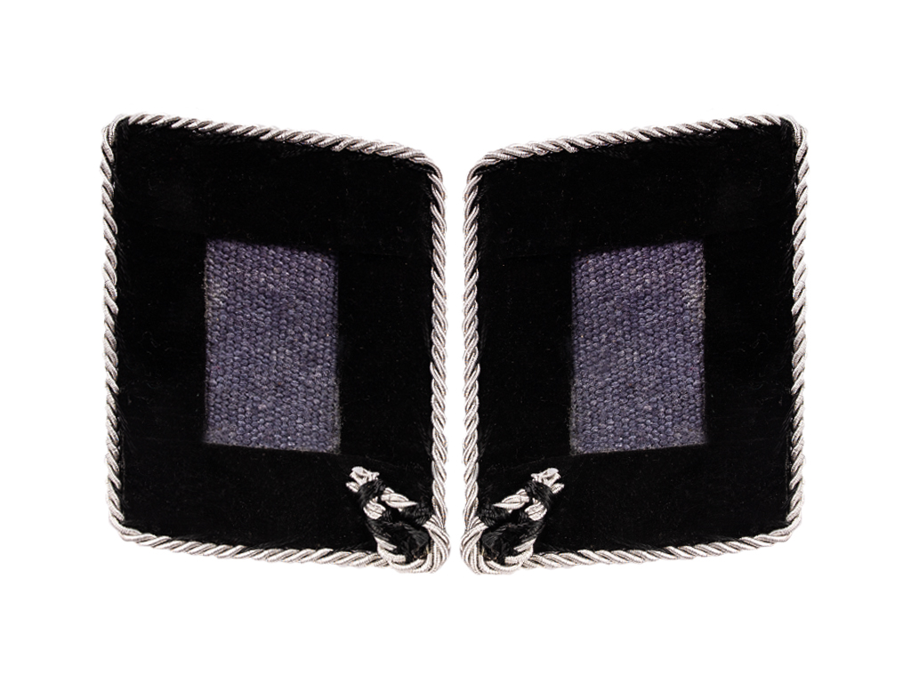 Идеально точные копии петличных знаков различия, размещаемых на вороте униформы военнослужащих Waffen-SS и Allgemeine-SS, SD. Звание Штандартенфюрер (нем. Standartenführer ) СС. Пара петличных знаков выполнена в виде зеркальных параллелепипедов из черного бархата, обшитого по периметру серебряным шнуром с вышитой вручную серебристой канителью. На обеих петлицах символы, соответствующие званию: дубовая ветвь с жёлудем внизу.